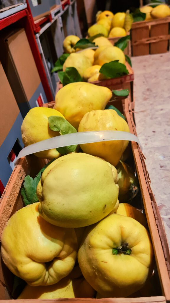Die Quittenernte ist nun bald vorbei. Noch duftet es unbeschreiblich in unserem kleinen Laden. Doch dieses Jahr muss man schnell sein mit der Verarbeitung, die Hitze des Sommers und der viele Regen, der zu schnellem Wachstum der Früchte geführt hat, sorgen dafür, dass die Quitten dieses Jahr nicht so lange halten wie gewöhnlich.